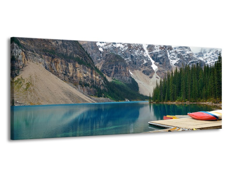 Canvas Schilderij Boot, Natuur | Grijs, Blauw, Groen | 145x58cm 1Luik