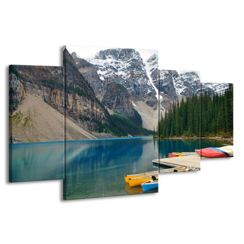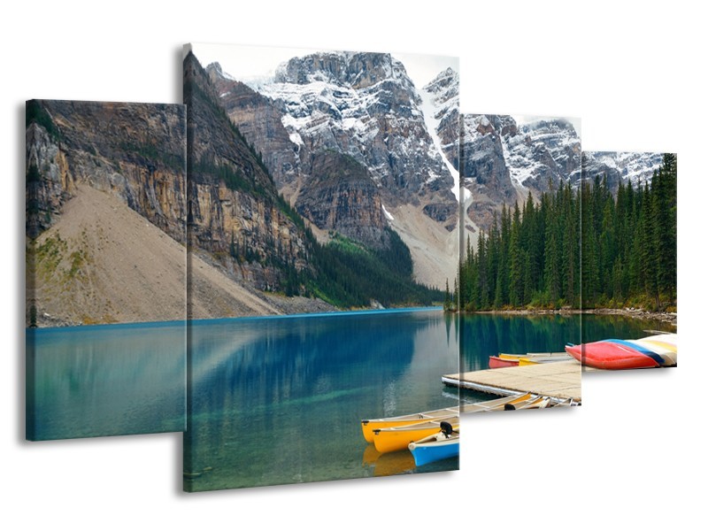 Canvas Schilderij Boot, Natuur | Grijs, Blauw, Groen | 160x90cm 4Luik