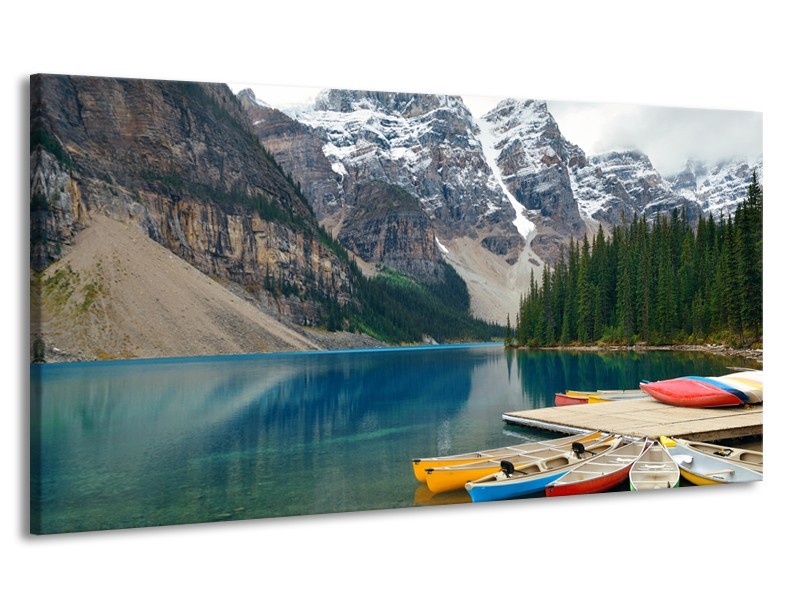 Canvas Schilderij Boot, Natuur | Grijs, Blauw, Groen | 170x90cm 1Luik