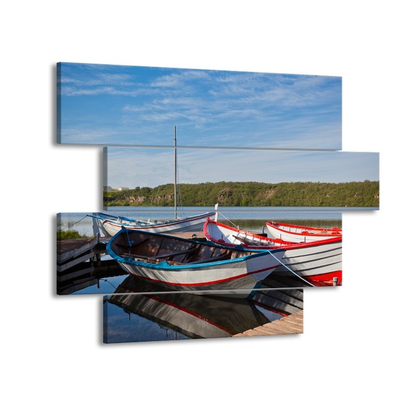 Canvas Schilderij Boot, Natuur | Grijs, Rood, Blauw | 115x85cm 4Luik