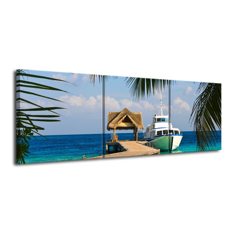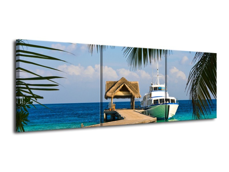 Canvas Schilderij Boot, Natuur | Groen, Blauw, Turquoise | 120x40cm 3Luik