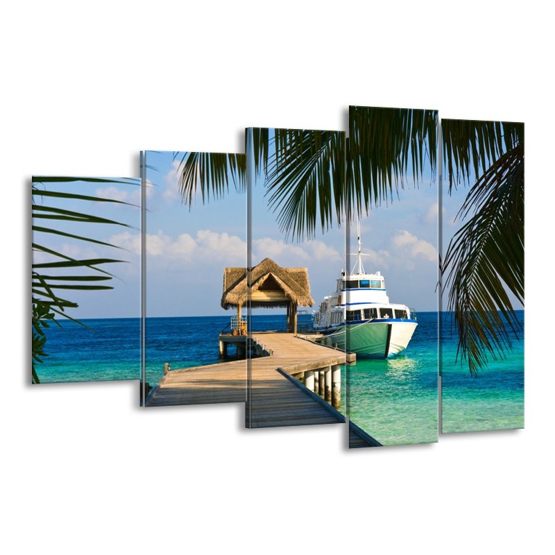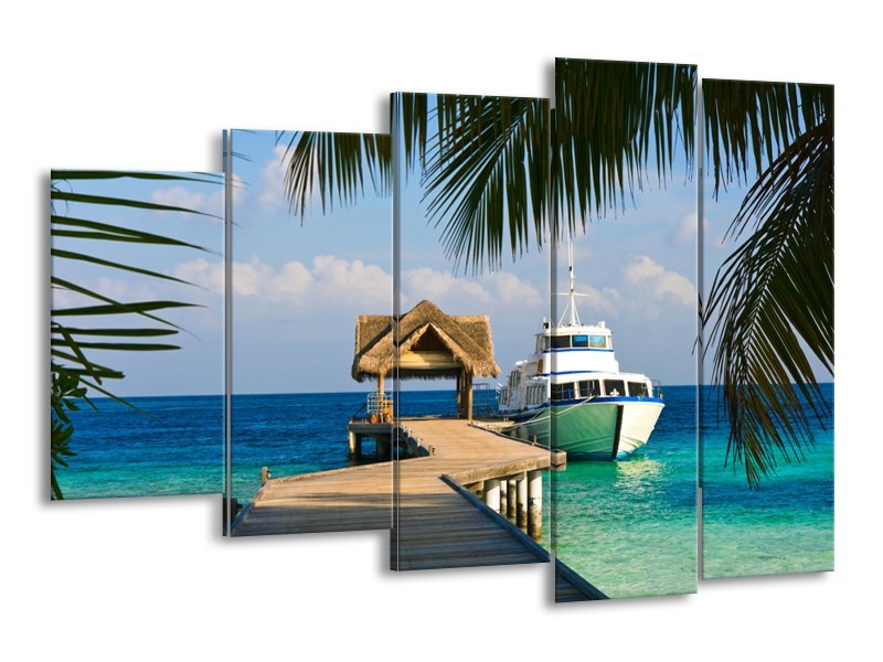 Canvas Schilderij Boot, Natuur | Groen, Blauw, Turquoise | 150x100cm 5Luik
