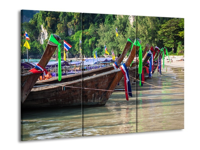 Canvas Schilderij Boot, Natuur | Groen, Bruin, Grijs | 60x90cm 3Luik