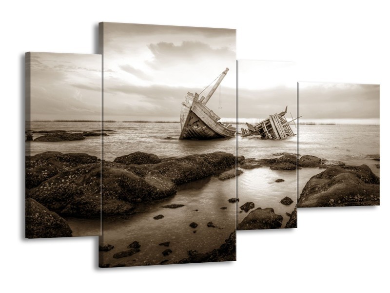 Canvas Schilderij Boot | Sepia | 120x75cm 4Luik