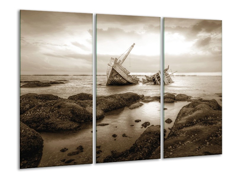 Canvas Schilderij Boot | Sepia | 120x80cm 3Luik