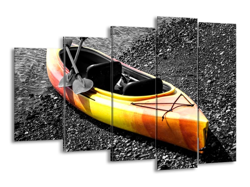 Canvas Schilderij Boot, Sport | Grijs, Geel, Oranje | 150x100cm 5Luik