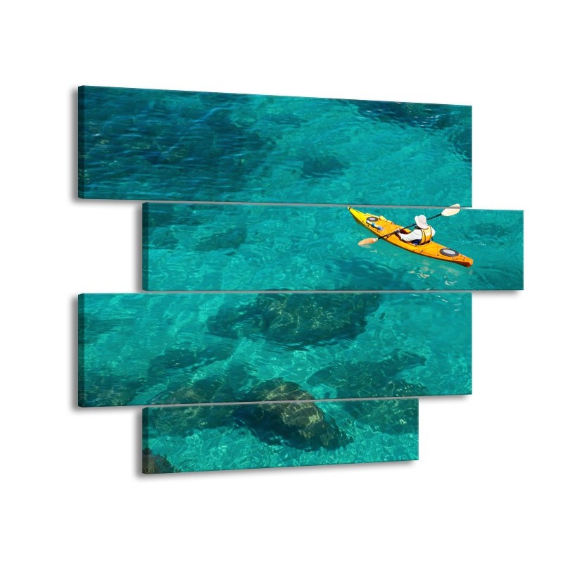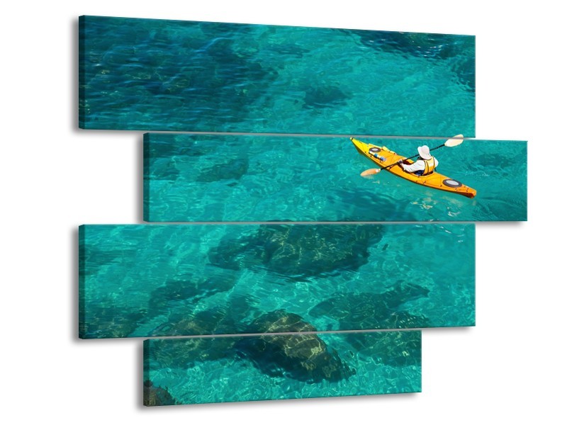 Canvas Schilderij Boot, Sport | Turquoise, Geel, Groen | 115x85cm 4Luik