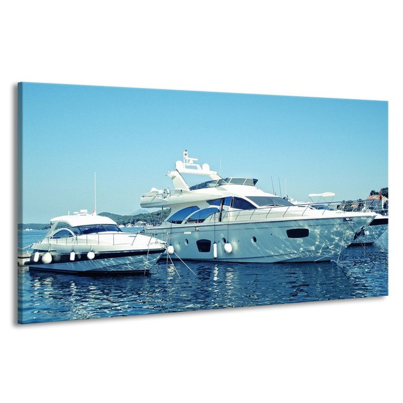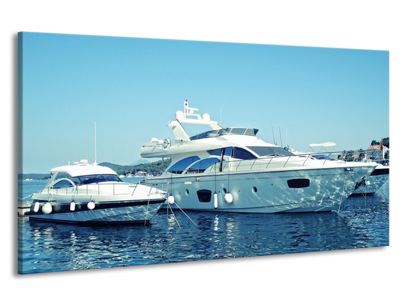 Canvas Schilderij Boot, Water | Blauw, Grijs, Wit | 190x100cm 1Luik