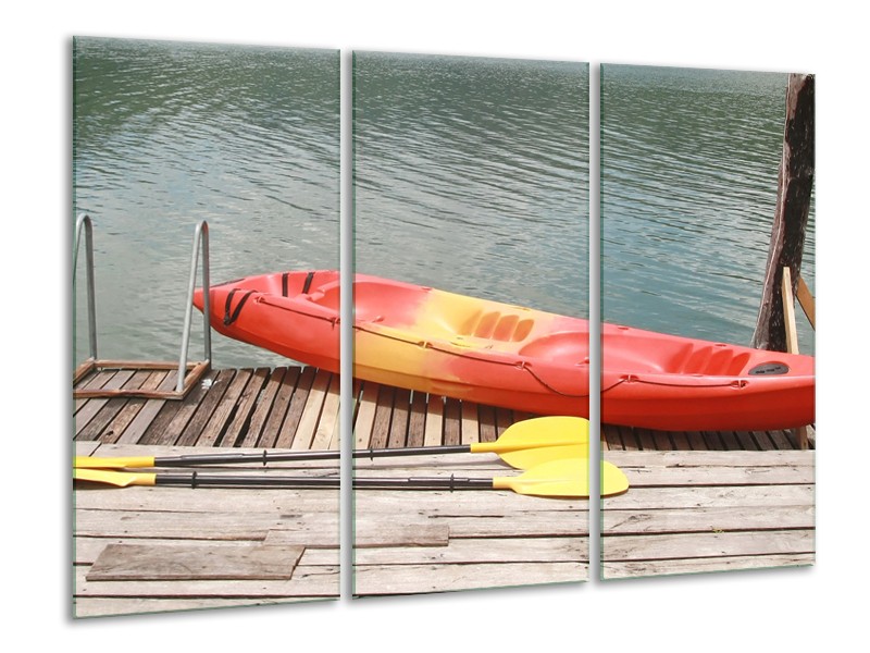 Canvas Schilderij Boot, Water | Geel, Oranje, Grijs | 120x80cm 3Luik