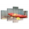 Canvas Schilderij Boot, Water | Geel, Oranje, Grijs | 150x80cm 5Luik