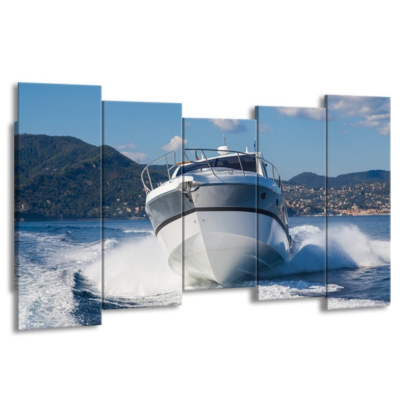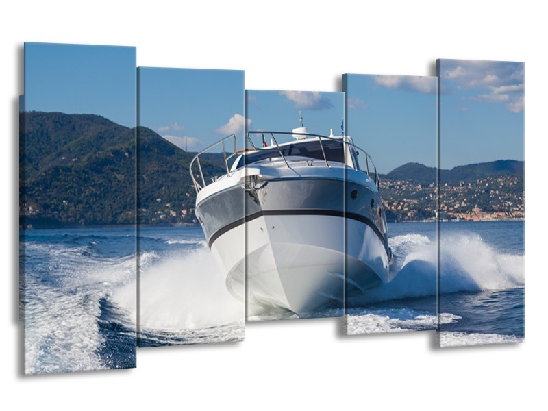 Canvas Schilderij Boot, Water | Grijs, Wit, Blauw | 150x80cm 5Luik