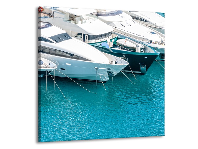 Canvas Schilderij Boot, Water | Wit, Turquoise | 50x50cm 1Luik