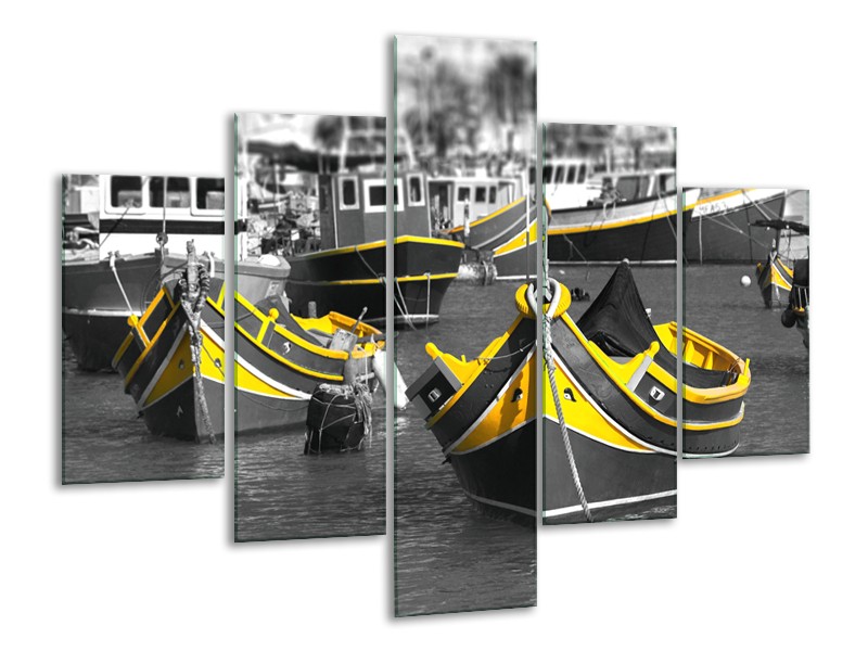 Canvas Schilderij Boot, Water | Zwart, Wit, Geel | 100x70cm 5Luik
