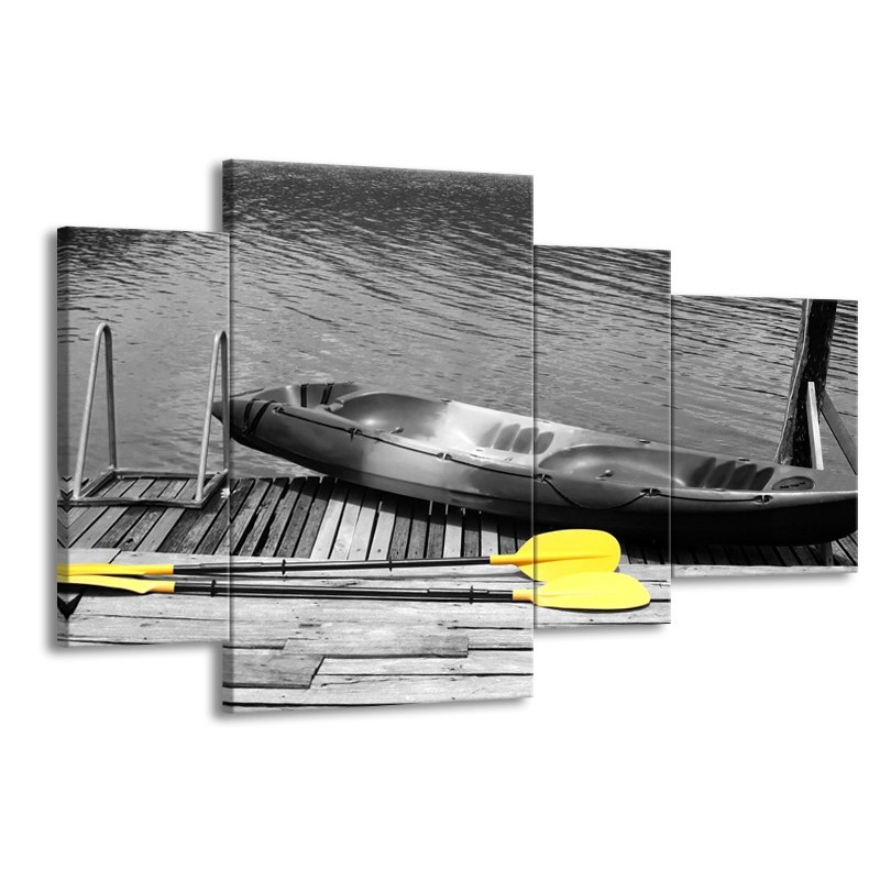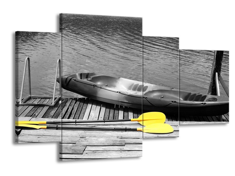 Canvas Schilderij Boot, Water | Zwart, Wit, Geel | 120x75cm 4Luik