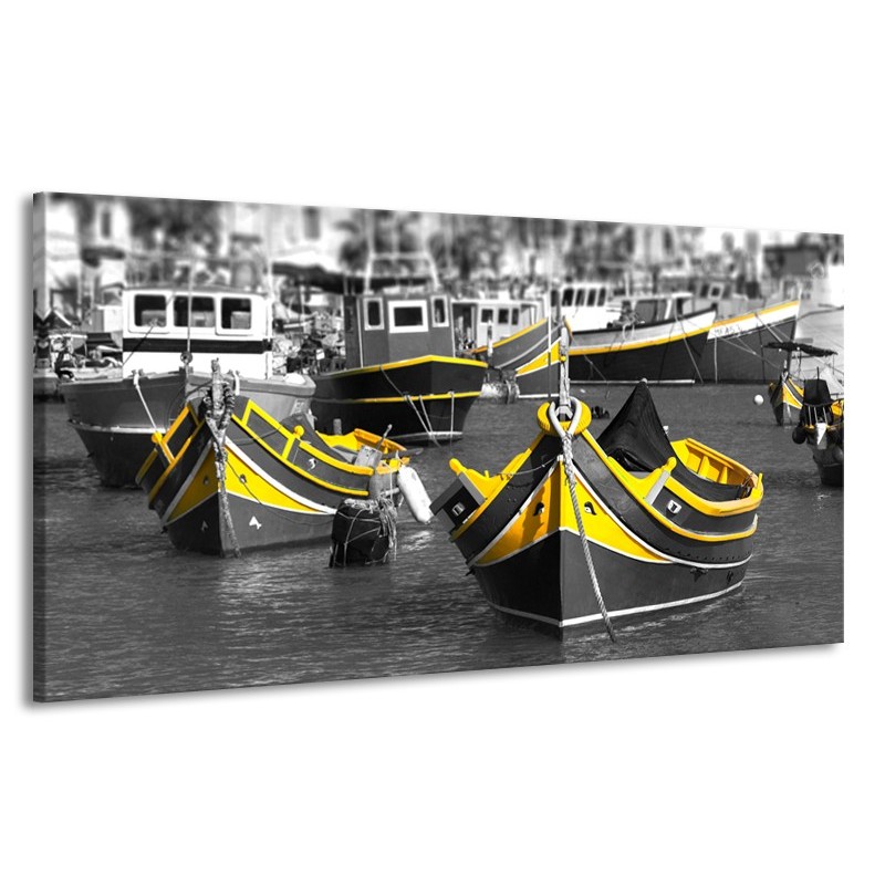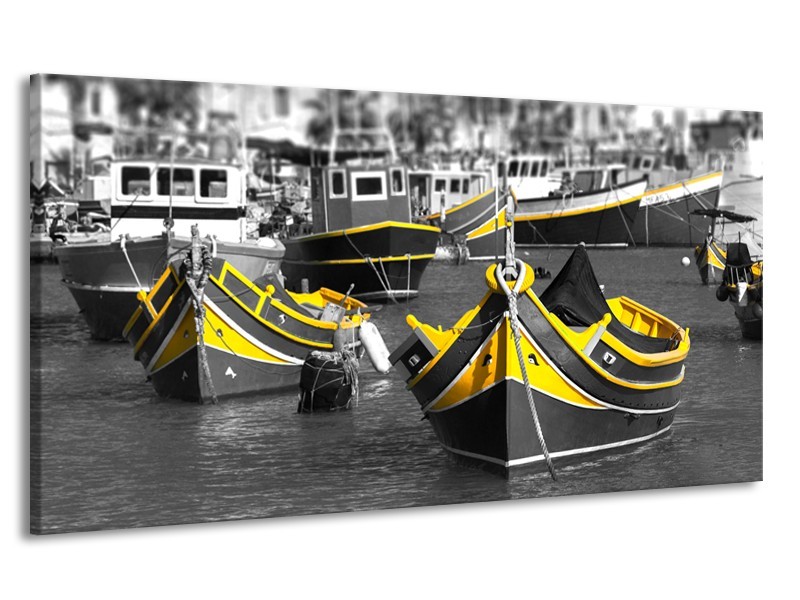 Canvas Schilderij Boot, Water | Zwart, Wit, Geel | 170x90cm 1Luik