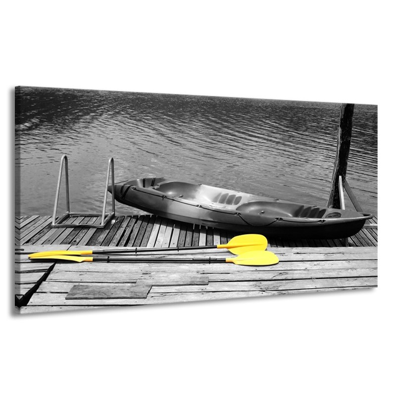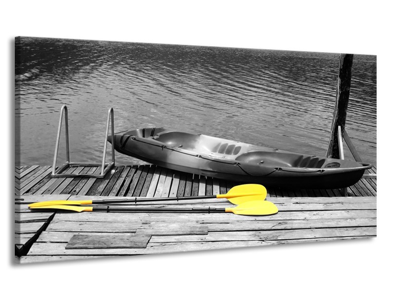 Canvas Schilderij Boot, Water | Zwart, Wit, Geel | 170x90cm 1Luik
