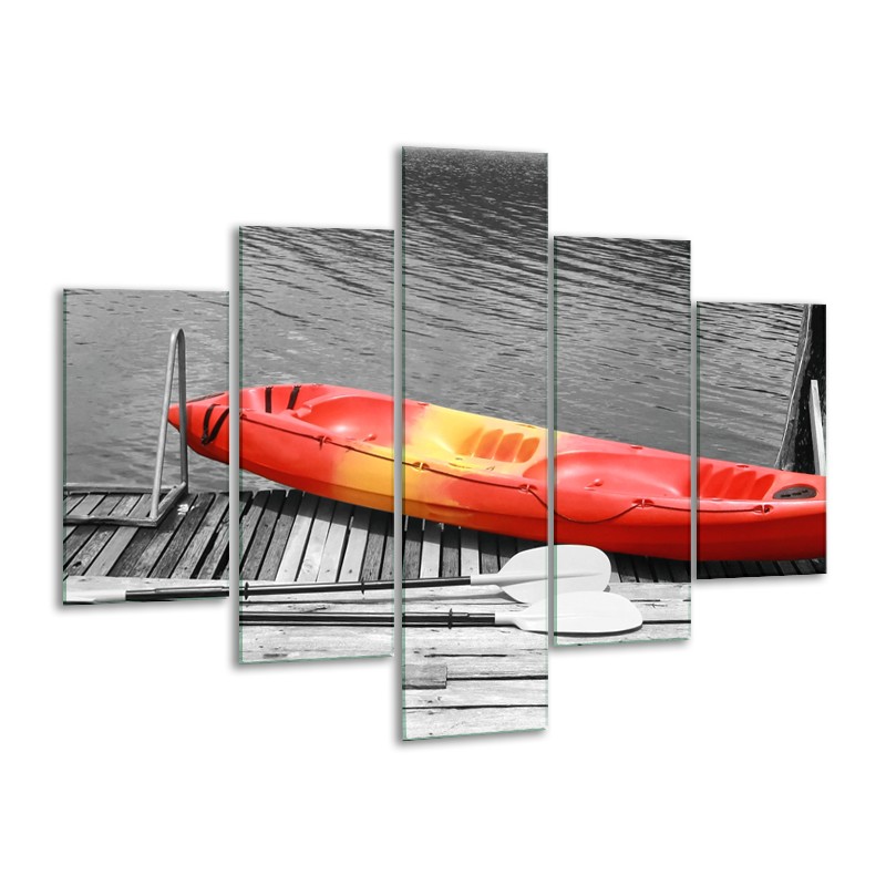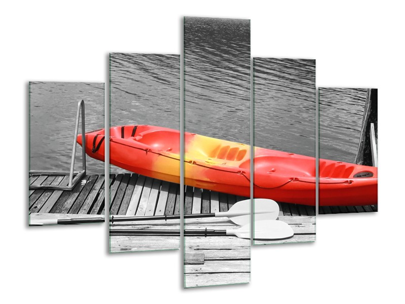 Canvas Schilderij Boot, Water | Zwart, Wit, Rood | 100x70cm 5Luik