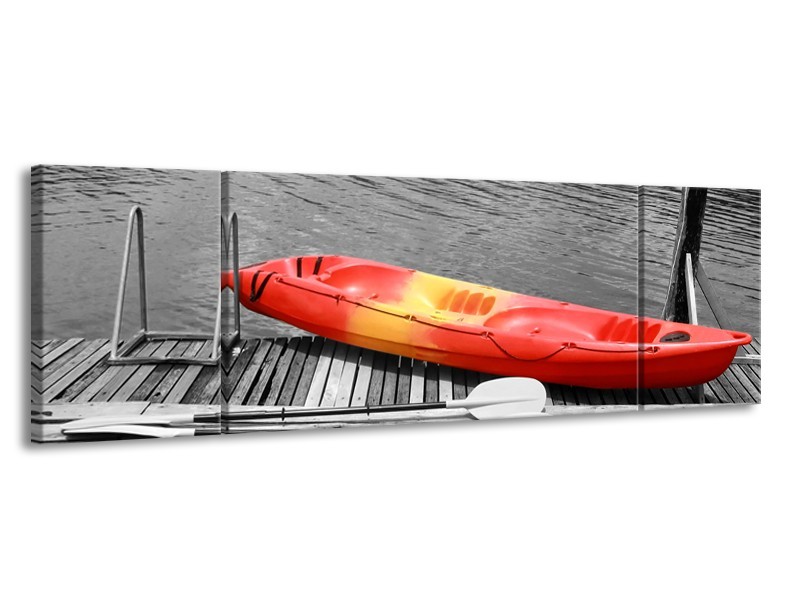 Canvas Schilderij Boot, Water | Zwart, Wit, Rood | 170x50cm 3Luik