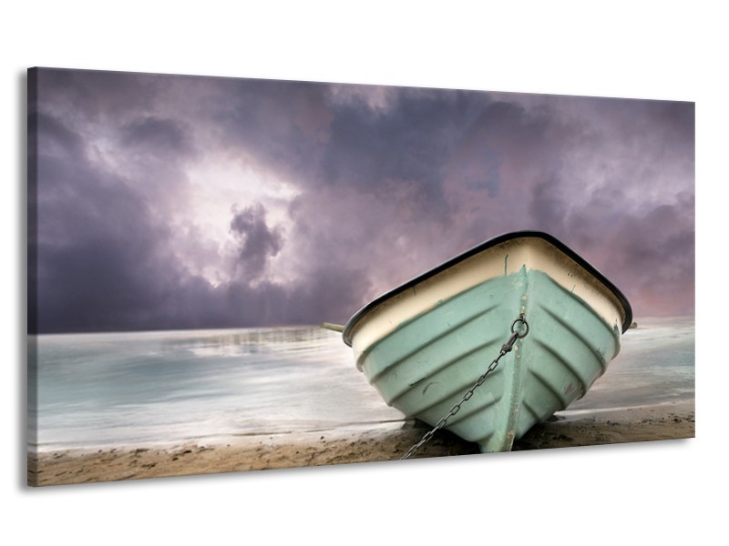 Canvas Schilderij Boot, Zee | Grijs, Groen, Paars | 170x90cm 1Luik