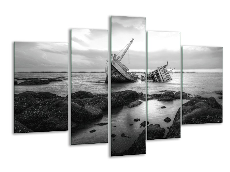 Canvas Schilderij Boot | Zwart, Grijs | 170x100cm 5Luik