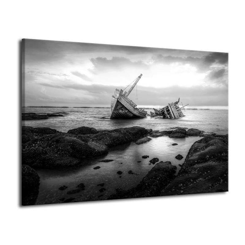 Canvas Schilderij Boot | Zwart, Grijs | 70x50cm 1Luik