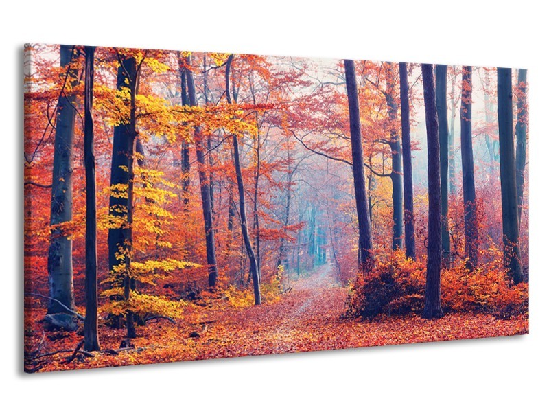 Canvas Schilderij Bos, Herfst | Oranje, Bruin, Grijs | 190x100cm 1Luik