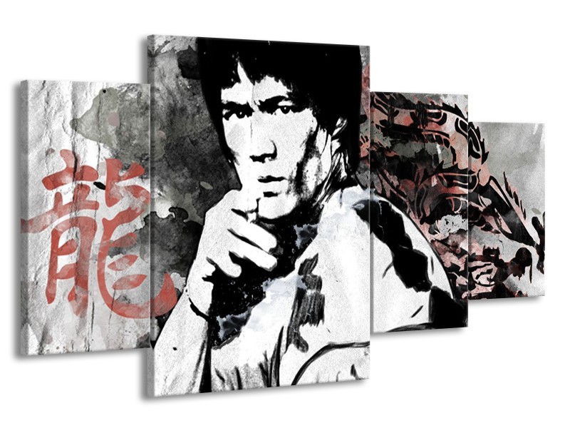 Canvas Schilderij Bruce Lee, Sport | Zwart, Wit, Rood | 160x90cm 4Luik