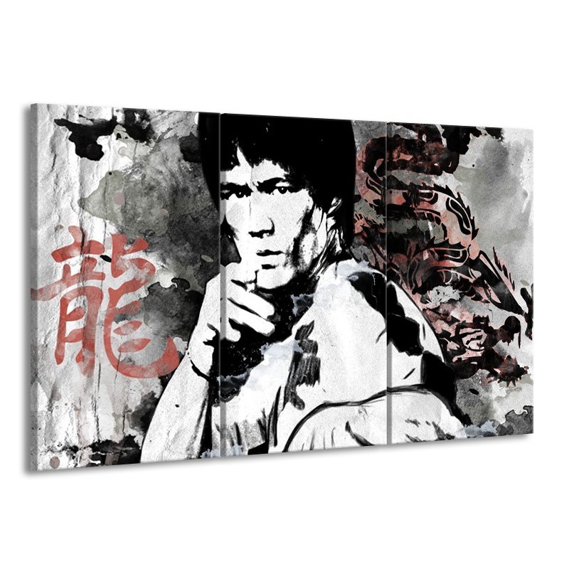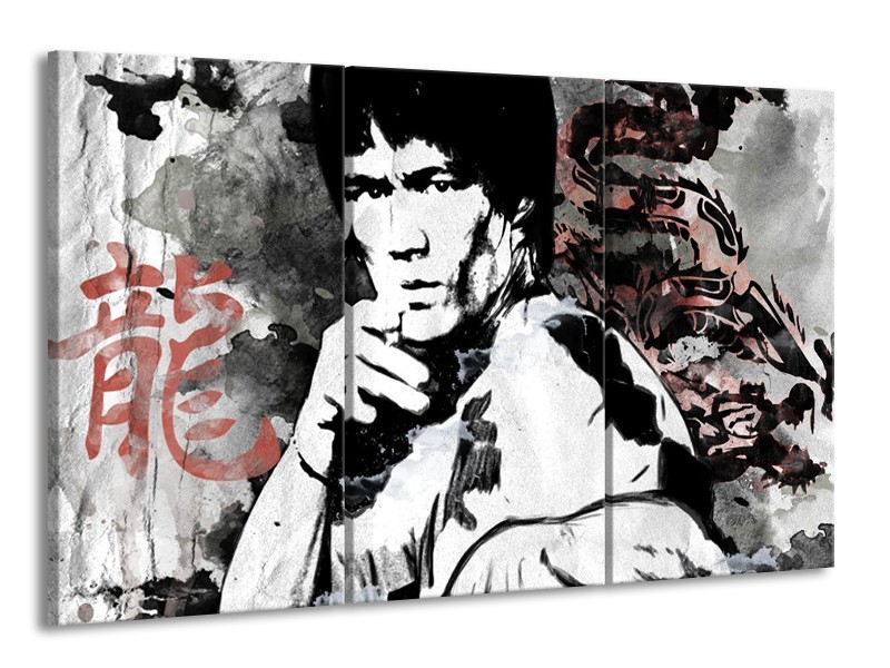 Canvas Schilderij Bruce Lee, Sport | Zwart, Wit, Rood | 165x100cm 3Luik