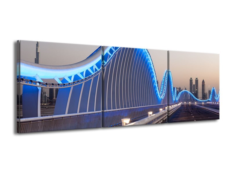 Canvas Schilderij Brug | Blauw, Grijs | 150x50cm 3Luik