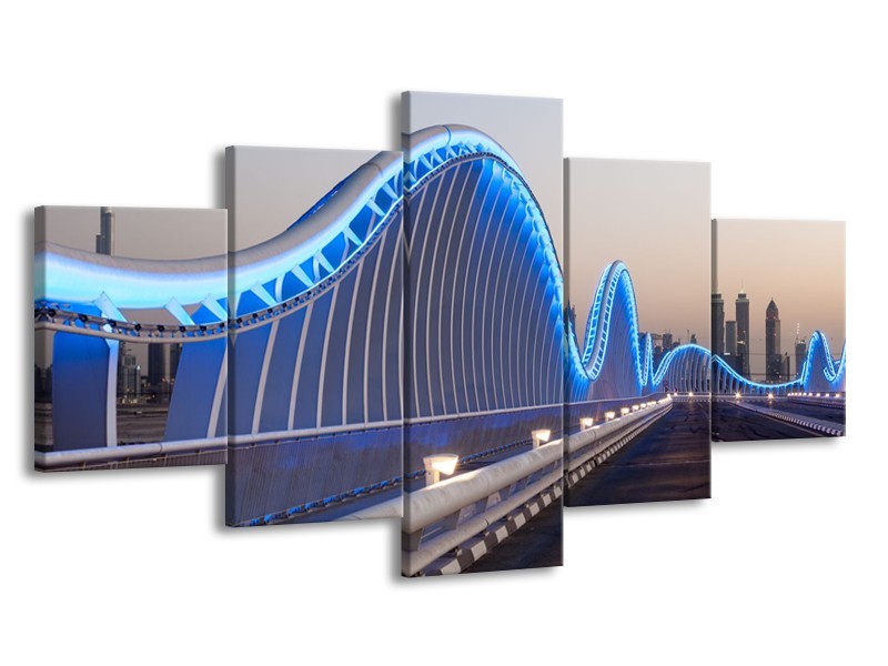 Canvas Schilderij Brug | Blauw, Grijs | 150x80cm 5Luik