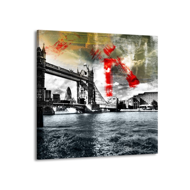 Canvas Schilderij Brug, Engeland | Grijs, Zwart, Wit | 70x70cm 1Luik