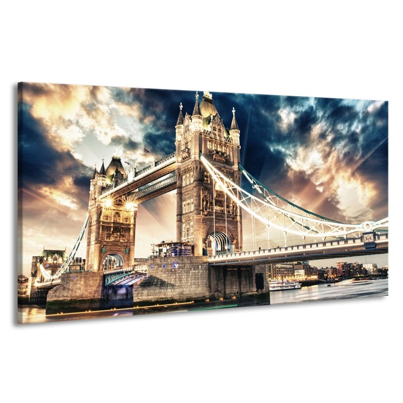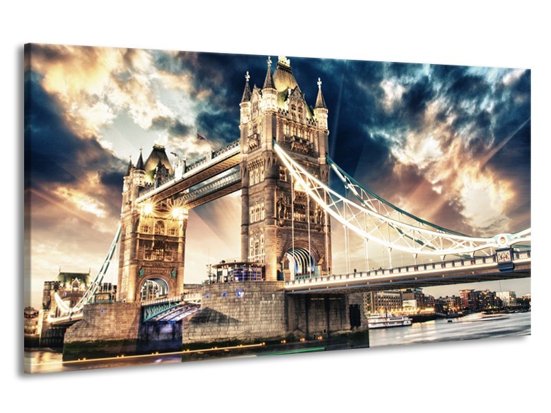 Canvas Schilderij Brug | Goud, Bruin, Blauw | 190x100cm 1Luik