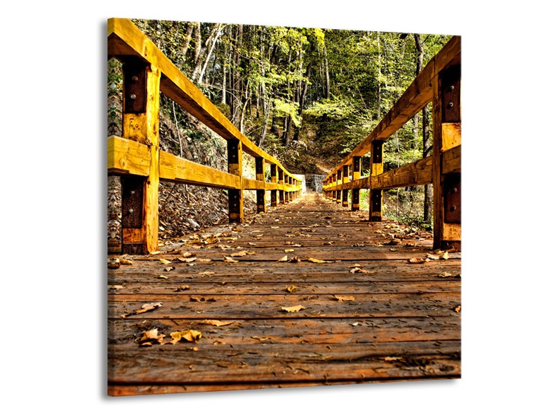 Canvas Schilderij Brug, Natuur | Bruin, Geel, Groen | 70x70cm 1Luik
