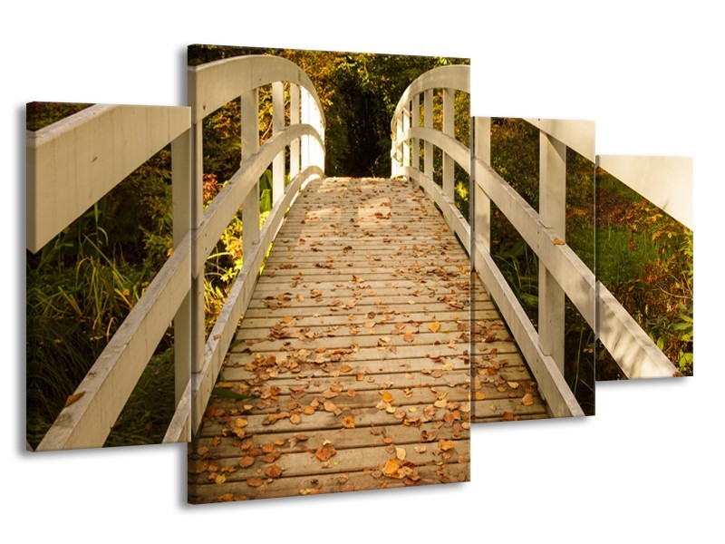 Canvas Schilderij Brug, Natuur | Bruin, Oranje, Crème | 160x90cm 4Luik