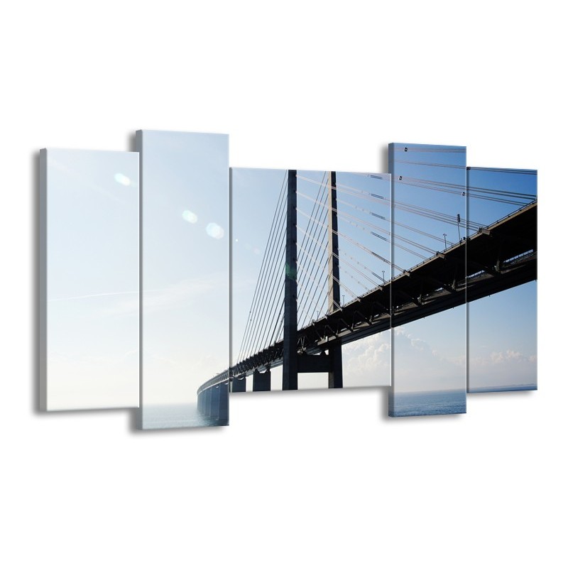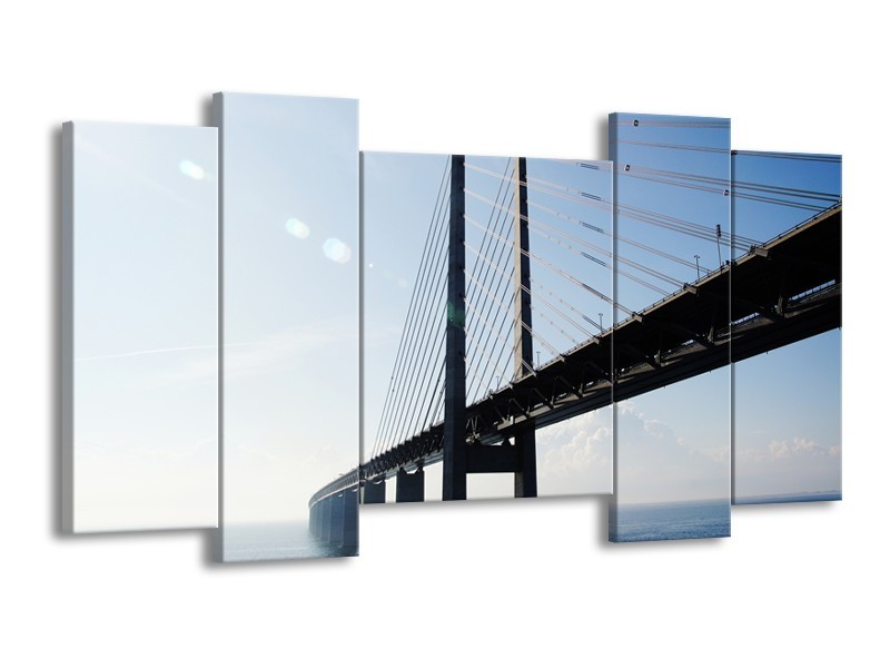 Canvas Schilderij Brug, Natuur | Grijs, Blauw, Zwart | 120x65cm 5Luik