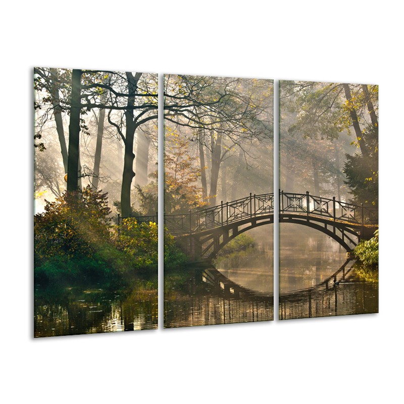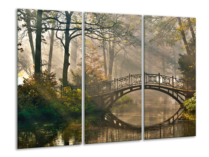 Canvas Schilderij Brug, Natuur | Grijs, Groen, Bruin | 120x80cm 3Luik