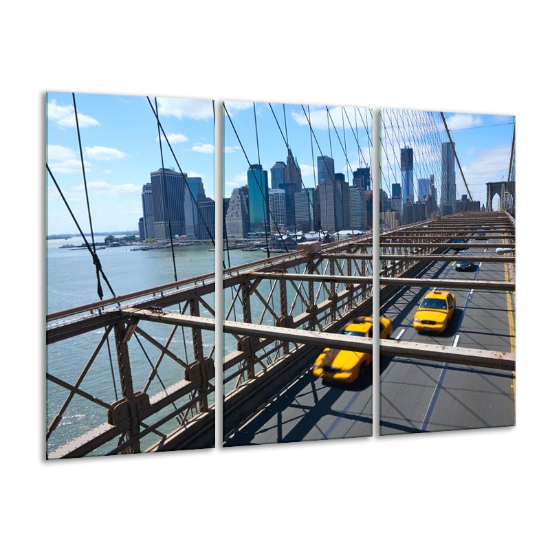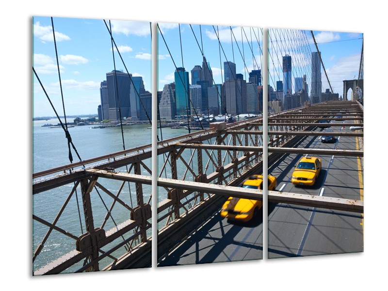 Canvas Schilderij Brug, New York | Grijs, Blauw, Geel | 120x80cm 3Luik