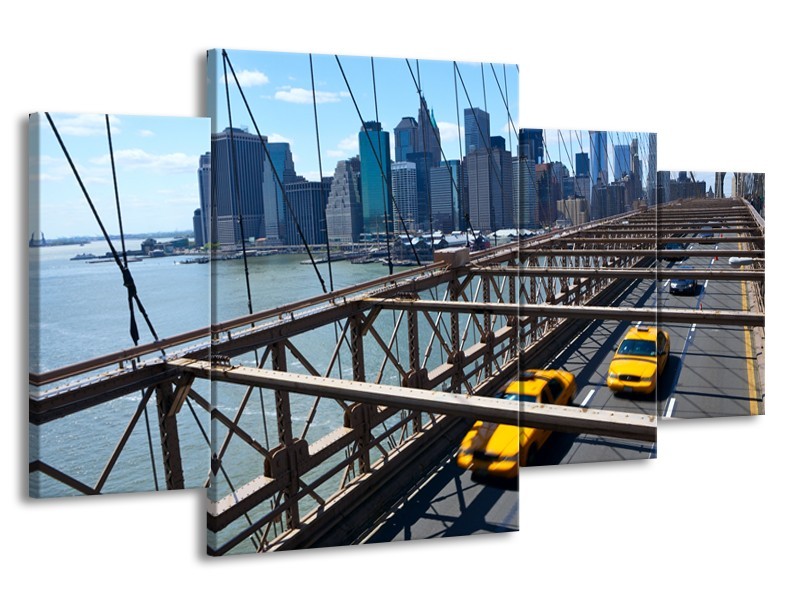 Canvas Schilderij Brug, New York | Grijs, Blauw, Geel | 160x90cm 4Luik