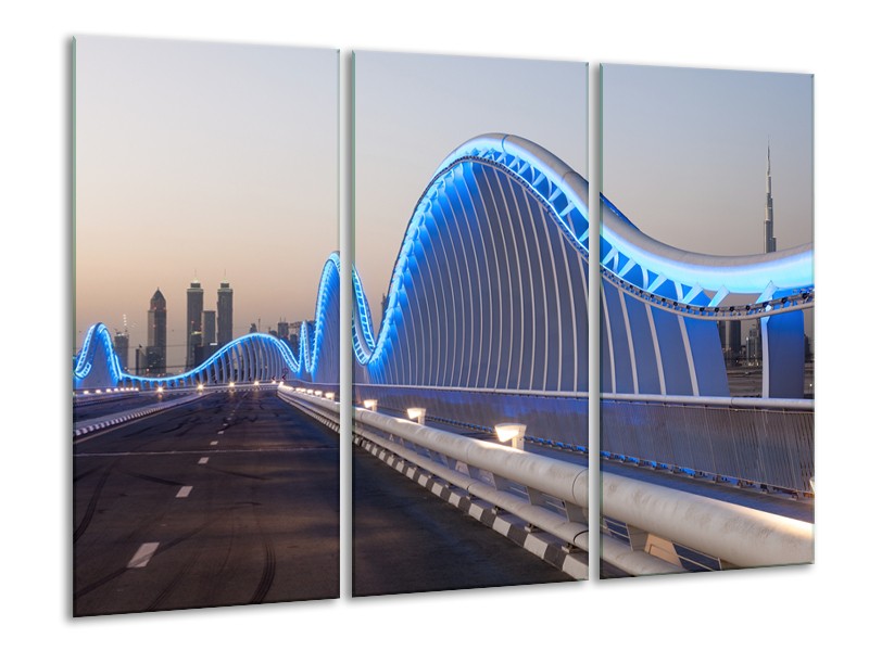 Canvas Schilderij Brug, Steden | Blauw, Grijs | 120x80cm 3Luik