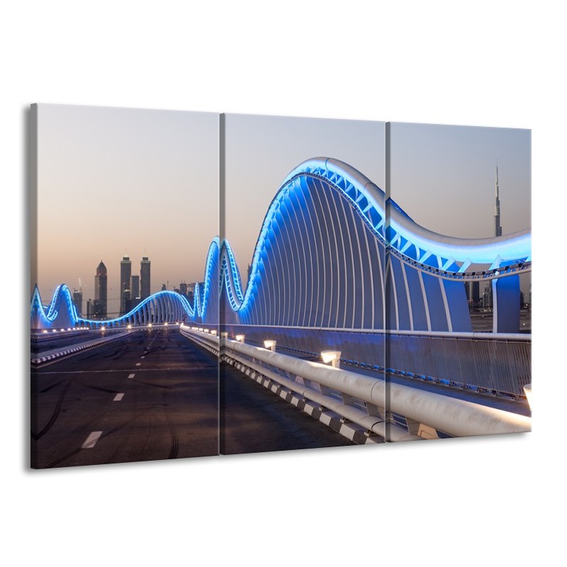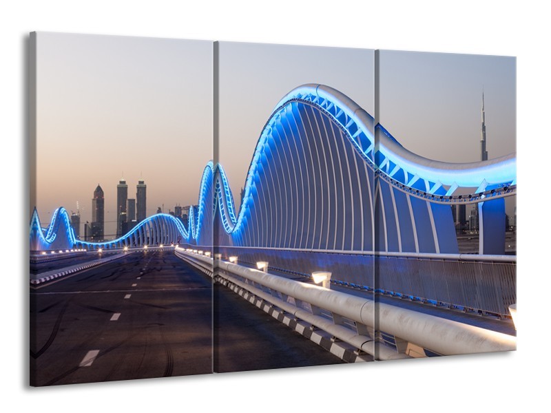 Canvas Schilderij Brug, Steden | Blauw, Grijs | 165x100cm 3Luik