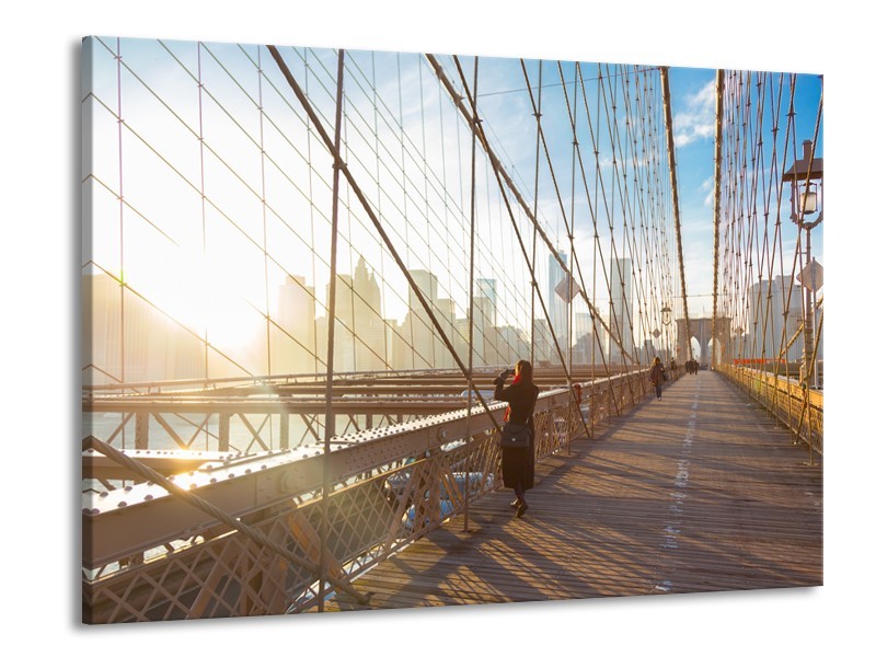 Canvas Schilderij Brug, Steden | Grijs, Blauw, Bruin | 100x70cm 1Luik