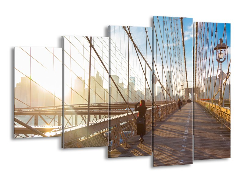 Canvas Schilderij Brug, Steden | Grijs, Blauw, Bruin | 150x100cm 5Luik