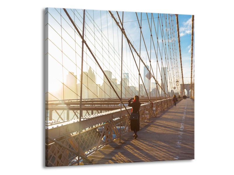 Canvas Schilderij Brug, Steden | Grijs, Blauw, Bruin | 70x70cm 1Luik