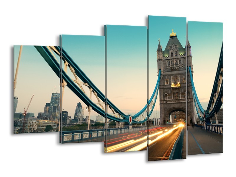 Canvas Schilderij Brug, Steden | Grijs, Blauw, Geel | 150x100cm 5Luik