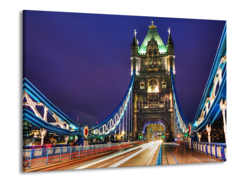 Canvas Schilderij Brug, Steden | Paars, Blauw, Bruin | 100x70cm 1Luik