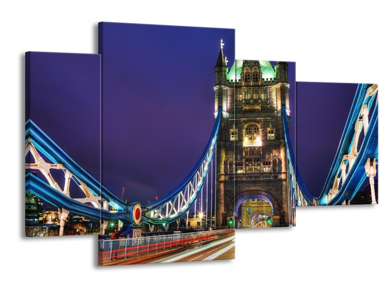 Canvas Schilderij Brug, Steden | Paars, Blauw, Bruin | 120x75cm 4Luik