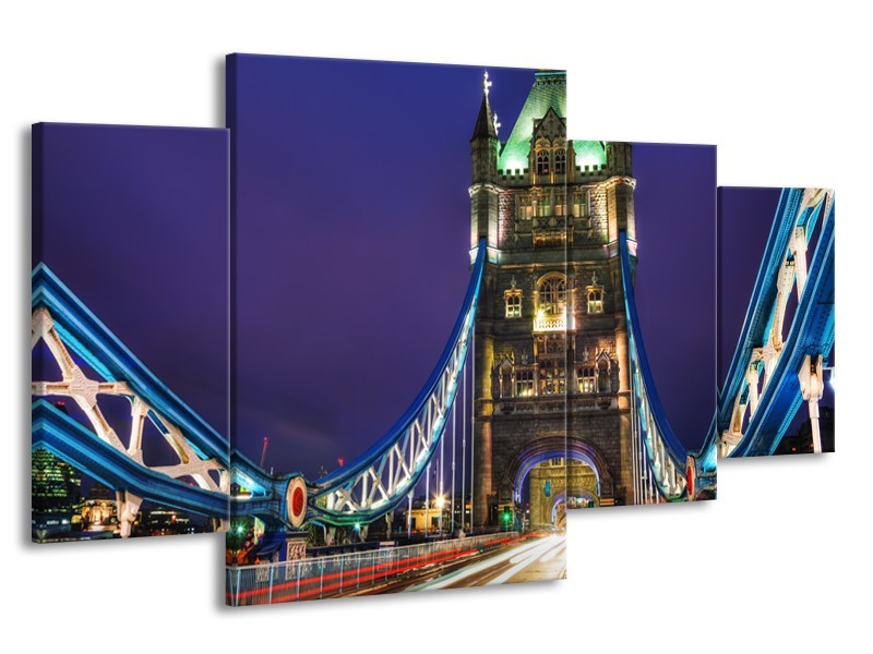 Canvas Schilderij Brug, Steden | Paars, Blauw, Bruin | 160x90cm 4Luik