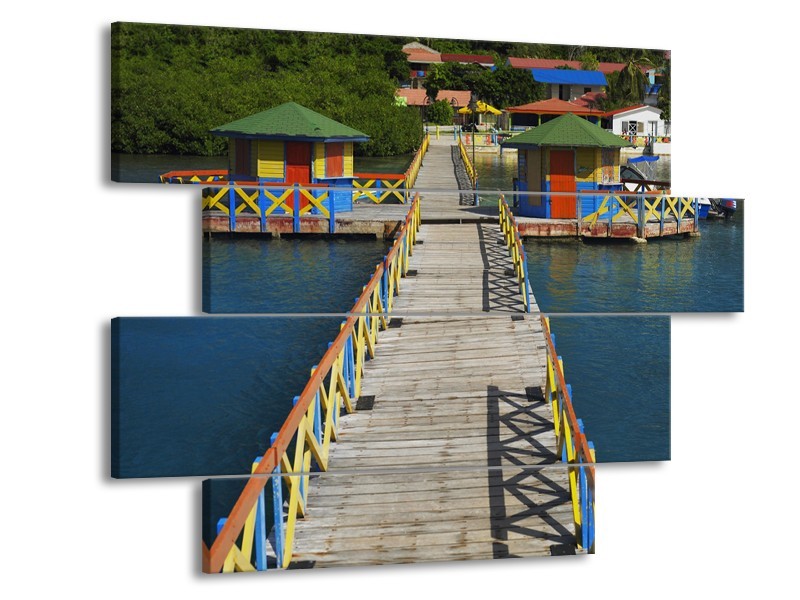 Canvas Schilderij Brug, Water | Blauw, Grijs, Geel | 115x85cm 4Luik