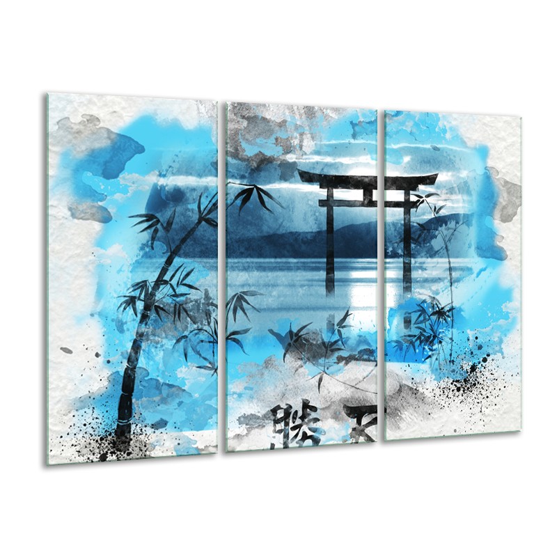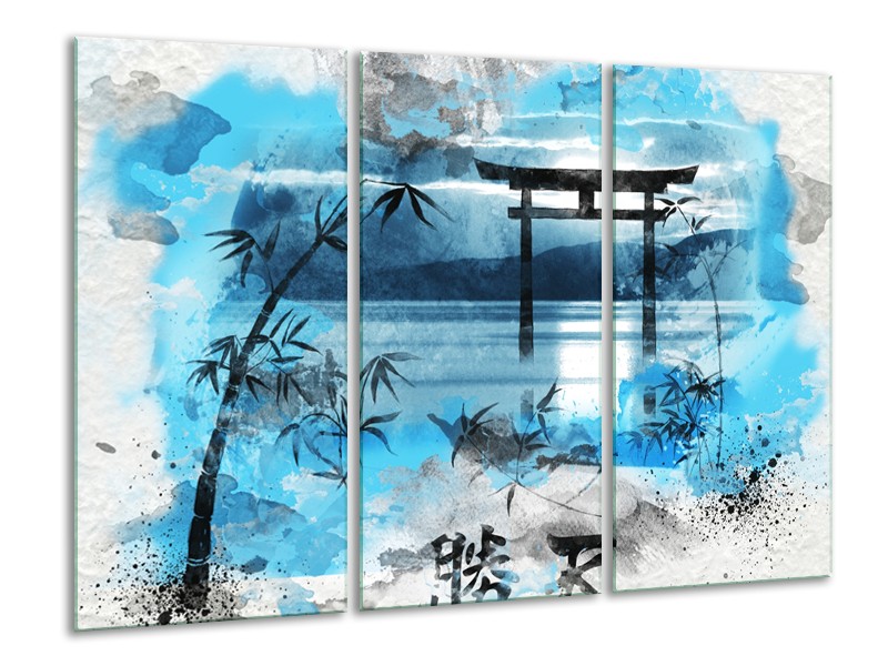 Canvas Schilderij Chinese Poort | Blauw, Grijs, Zwart | 120x80cm 3Luik