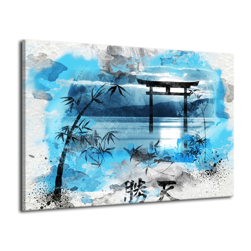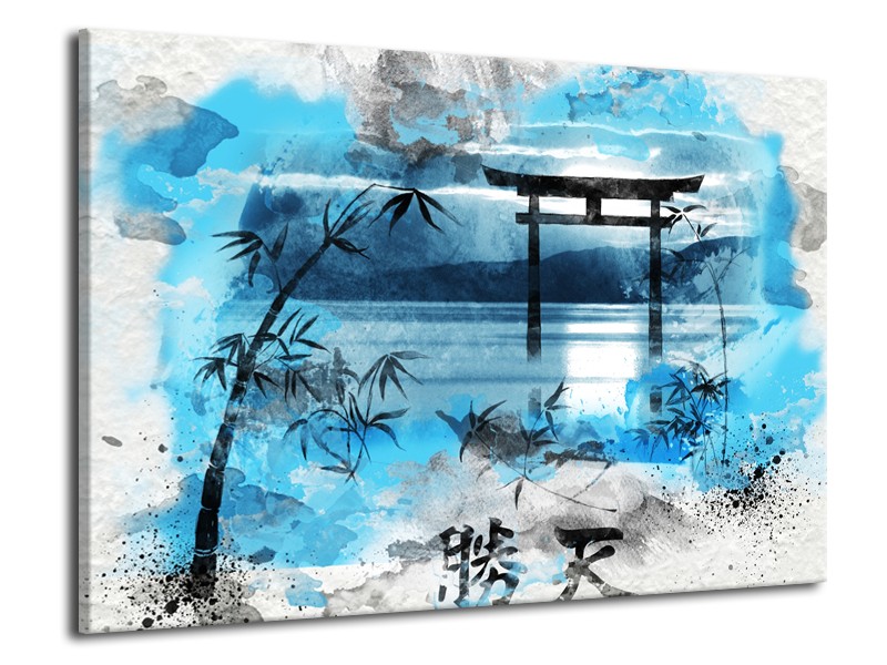 Canvas Schilderij Chinese Poort | Blauw, Grijs, Zwart | 70x50cm 1Luik